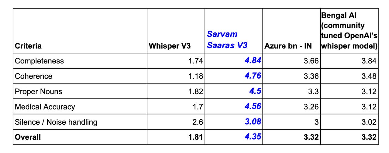 Before picking a transcription engine I ran a benchmark — four engines, same 50 real calls, rural West Bengal Bengali recorded on basic phones. Scored across five criteria: completeness, coherence, proper noun accuracy, medical content accuracy, and handling of noise and dropped calls.